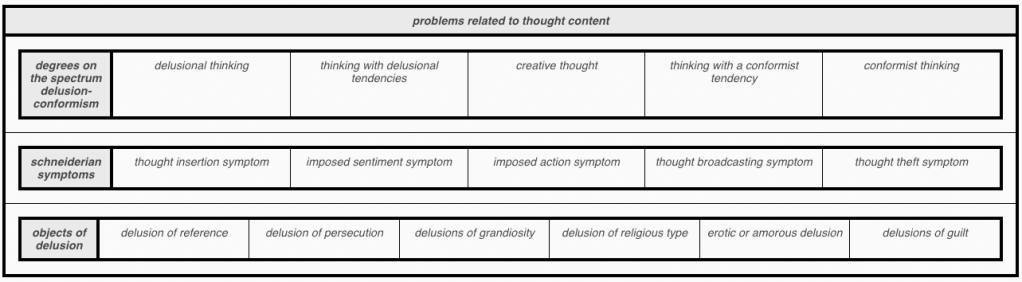 Examples of conceptual organization of symptoms (related to psychic functions) in the field of mental health