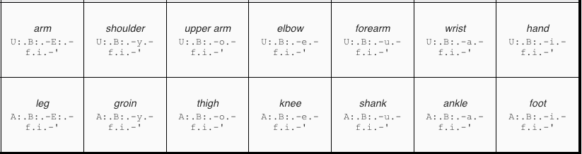 Table 2: arm and leg