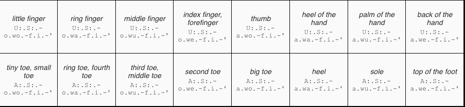 Table 3: hand and foot