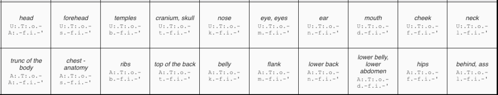 Table 1: head and trunk