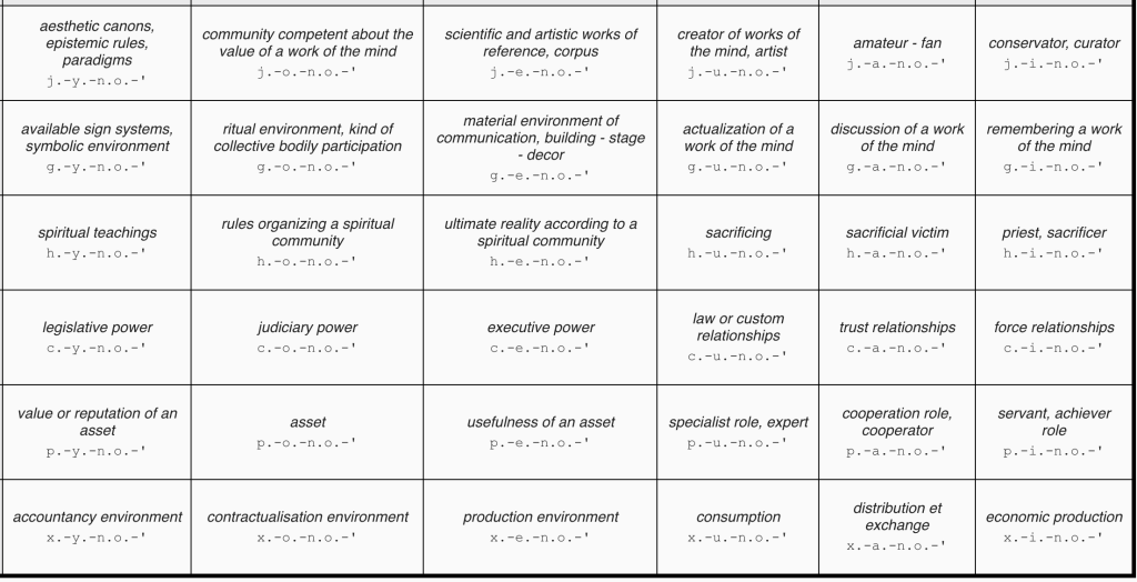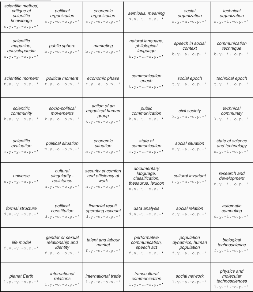 In order to understand the IEML paradigmatic tables, follow the reading instructions.
