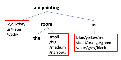 Let’s consider again the sentence « I am eating a cake ». By keeping the present tense and the grammatical object (second actant), I can vary the person and the number of the subject (or first actant) and substitute to « I », the series: « you, he or she, we, you, they » while harmonizing the verb. I can also vary the tenses by keeping the mode: “ate” (preterit), « was eating » (imperfect), “will eat » (future). I can also, still for the same sentence, keep the mode, the tense, the grammatical person and the object but replace “eating » with “cooking », “baking », « sharing », etc. In the latter case, I have varied the lemma or, if one prefers, the concept of the action. However, I can’t do it just any way. How could I « debunk » or « tickle » a cake, for example (except in a highly metaphorical sense)?