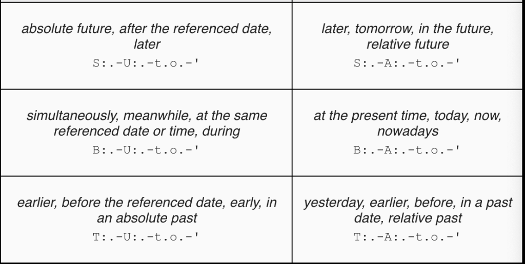 Table 5: cases for the explanation of simultaneity, duration and relations in time
