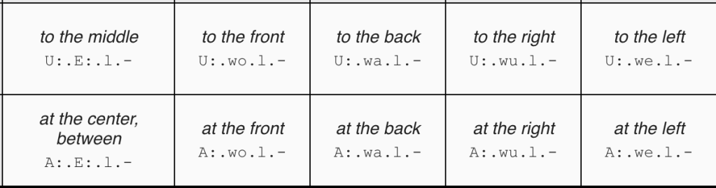 Table 7: place cases relative to the vertical axis