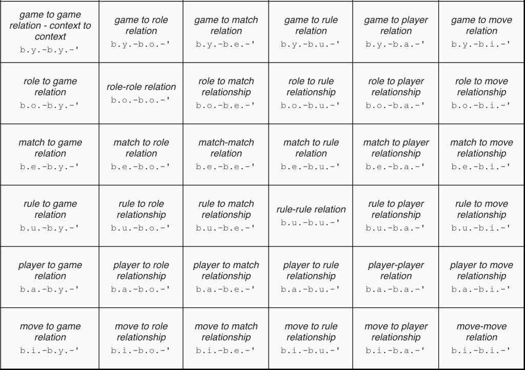 Table 11: relations between games, roles, matches, players and moves