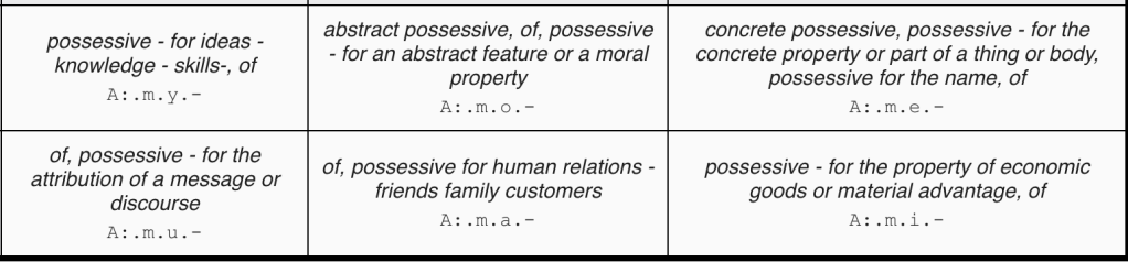 Table 13: possessives