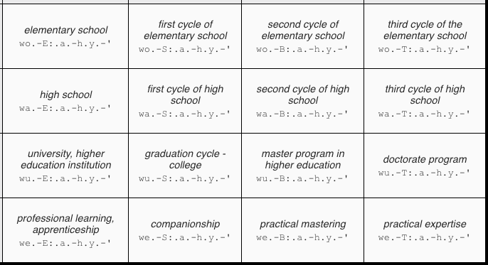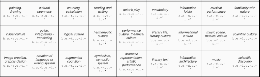// ☯ For each degree, there is a concept of ↓ performance finishing with i.-‘ and a concept of ↑ competence finishing with e.-‘
