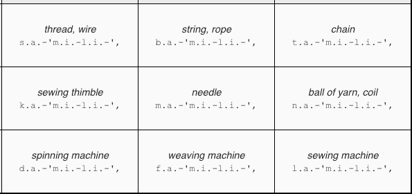 In Table 3, the first row is about threads, the second row about sewing and the third row about machines.