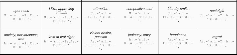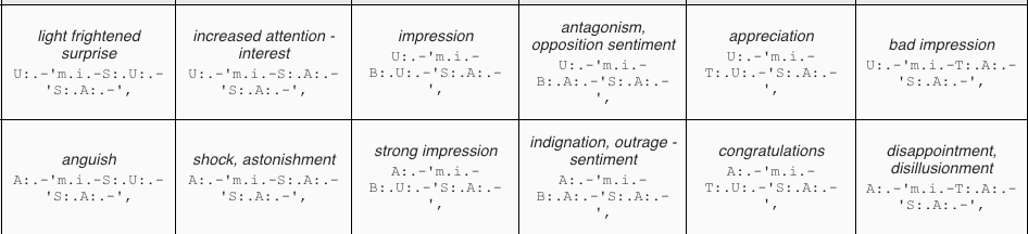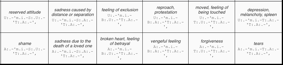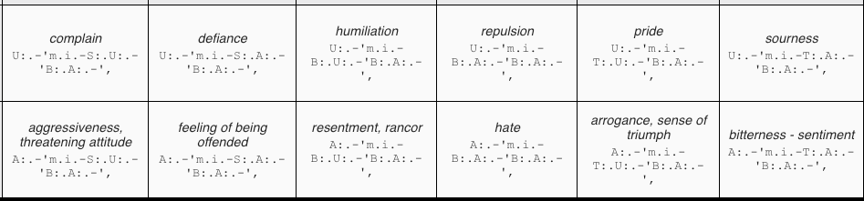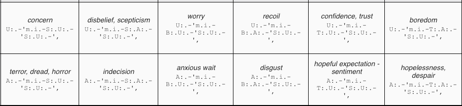 Sadness = «m.i.-T:.A:.-‘» sixth column in tables below
